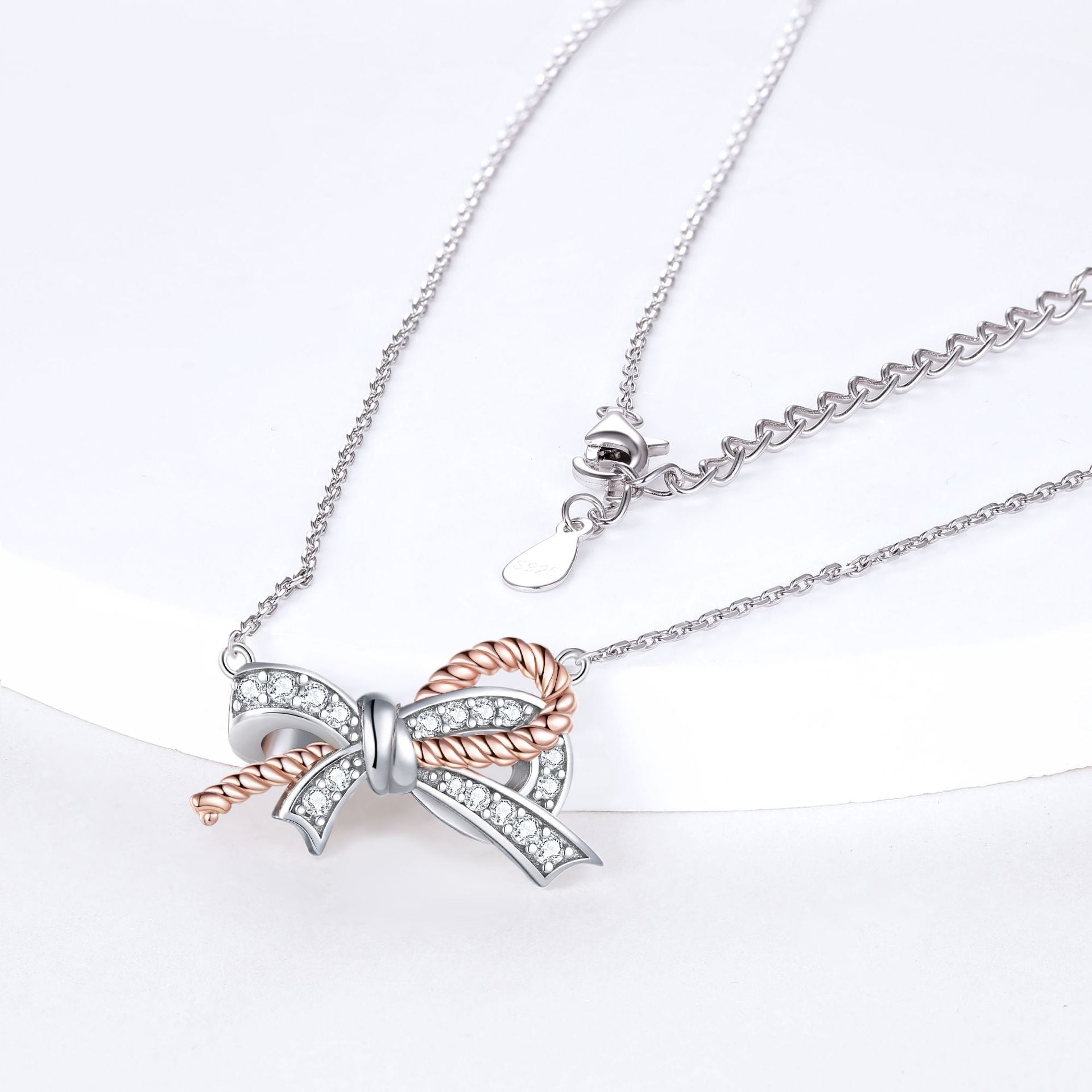 This elegant Zircon Bowknot sterling silver necklace is a tasteful, sophisticated accessory for any wardrobe. The beautiful rose gold Hemp Rope entwines the sparkly zircon bowknot, adding an eye-catching touch of luxe. A precious accent piece perfect for any look.