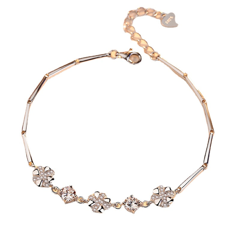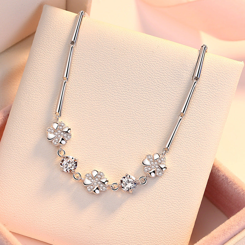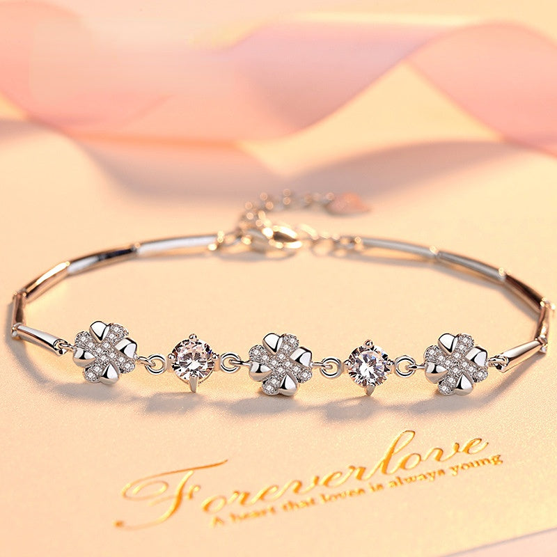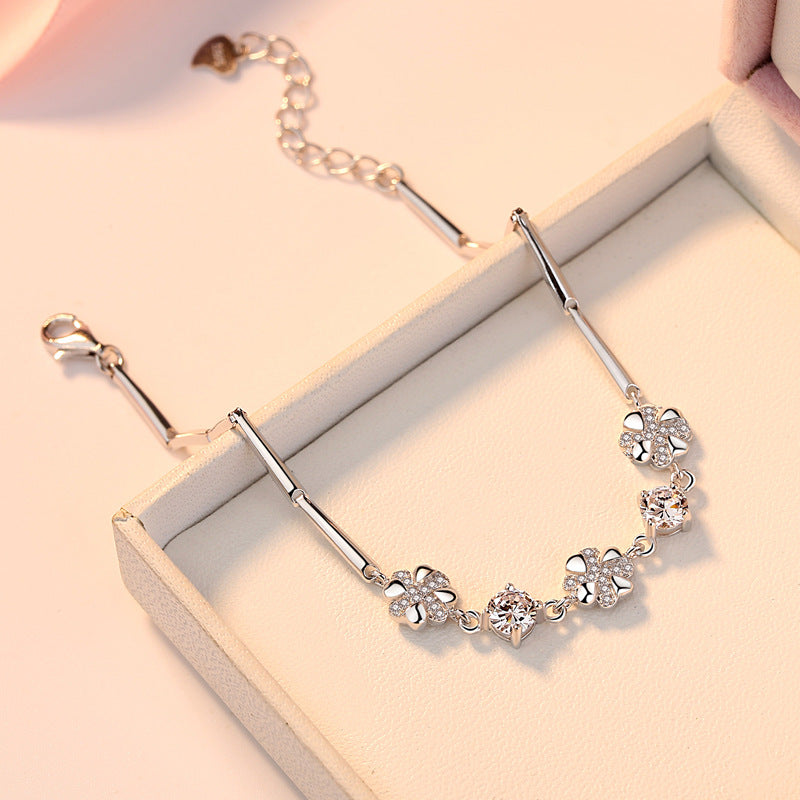 Four-leaf Clover Zircon Beading Silver Bracelet for Women