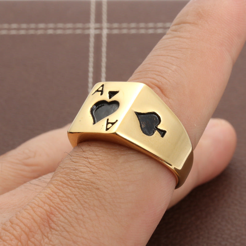 Titanium Steel Spade A Ring - Punk Rock Men's Poker Ring