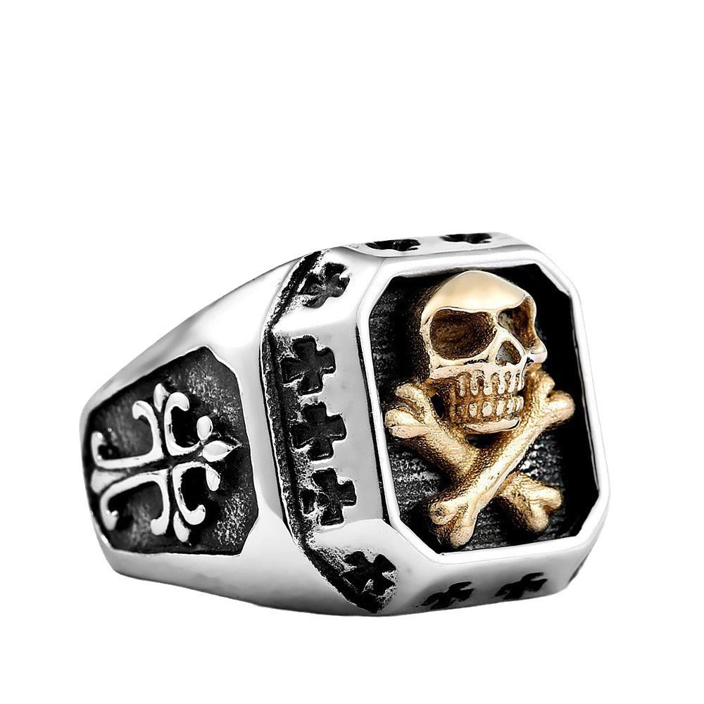 Vintage-Inspired Stainless Steel Skull Ring for Men - Titanium Steel Cross Punk Style