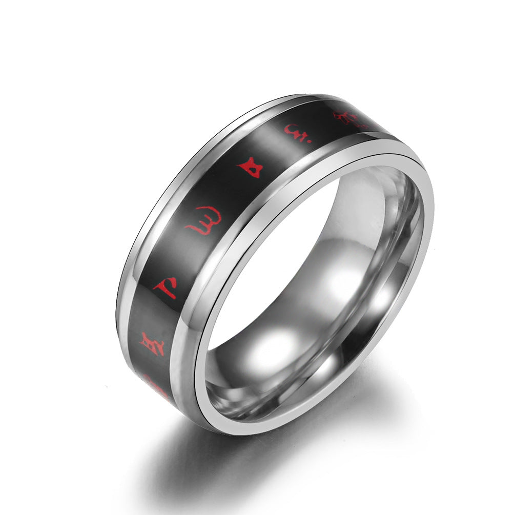Chinese Style Six Characters Intelligent Temperature Titanium Steel Ring for Men