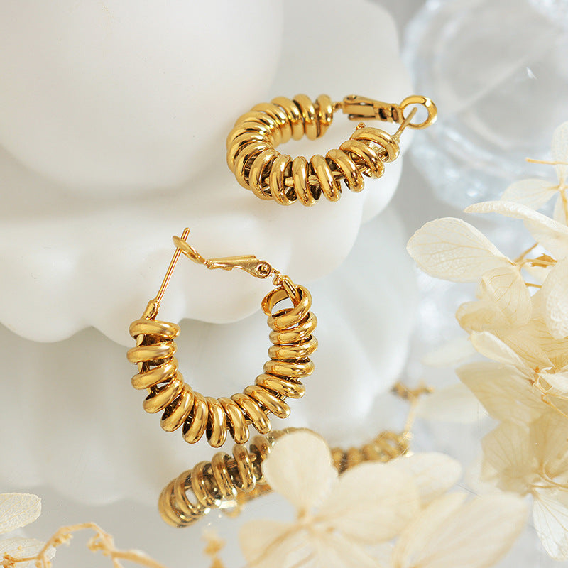 Step into the spotlight with our handcrafted Circular Spiral Ring Buckle U-Shaped Earrings, inspired by European and American Instagram trends. Embrace a neutral style that effortlessly complements any outfit.