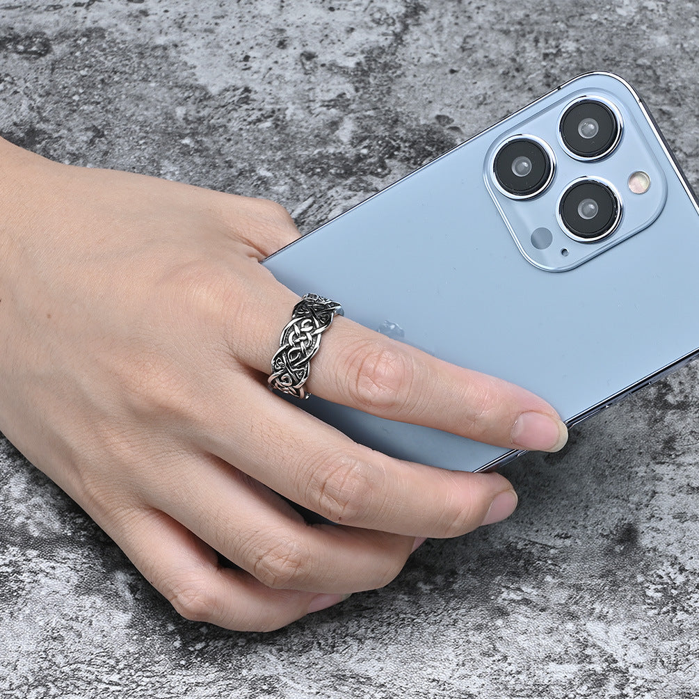Cross-Border Amazon Celtic Wolf Titanium Steel Ring for Men