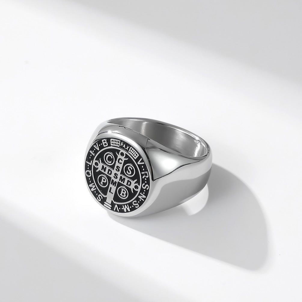 Introducing our Cross-border Amazon European and American style exorcist cross titanium steel ring, men's stainless steel wrench jewelry for men. This unique piece of jewelry combines style and strength, making it an essential addition to any modern man’s collection. Crafted from high-quality titanium steel, this ring is not only durable but also provides a striking aesthetic that stands out.