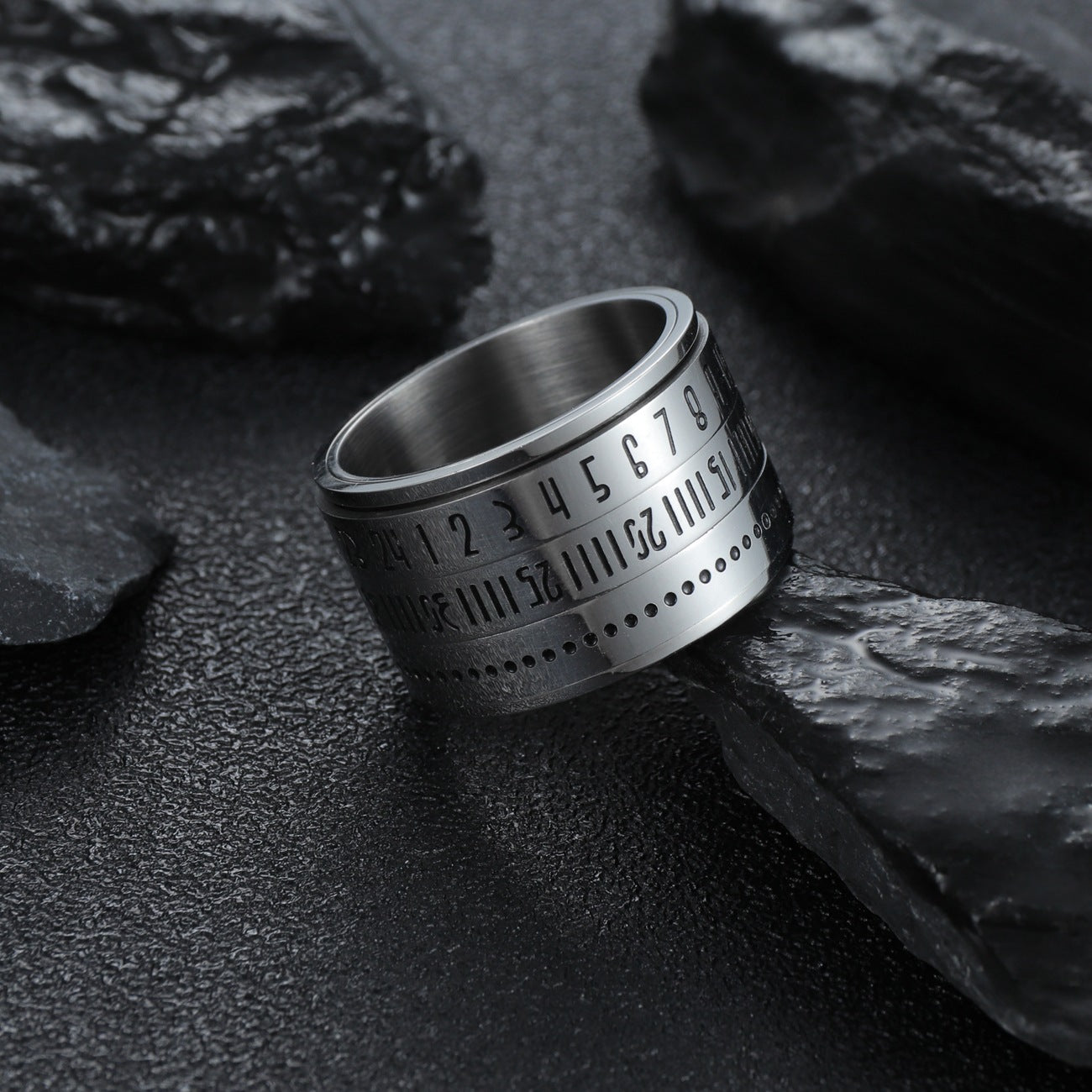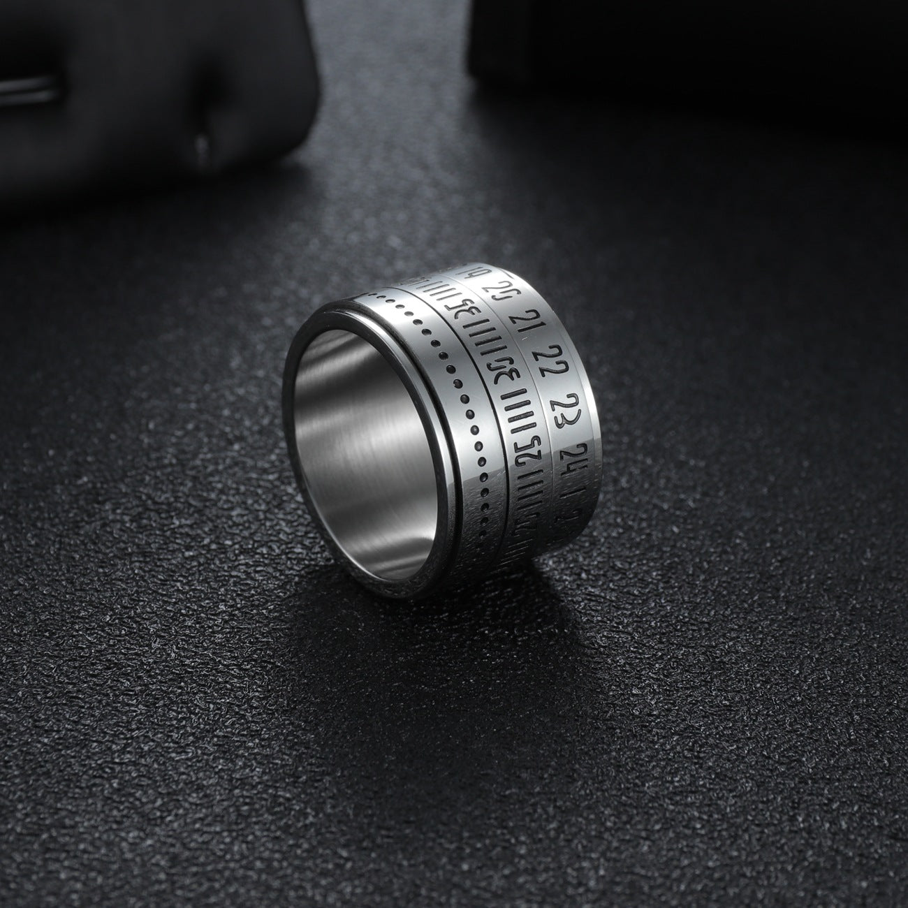 Experience Modern Elegance with our Titanium Steel Arabic Numeral Rotating Ring