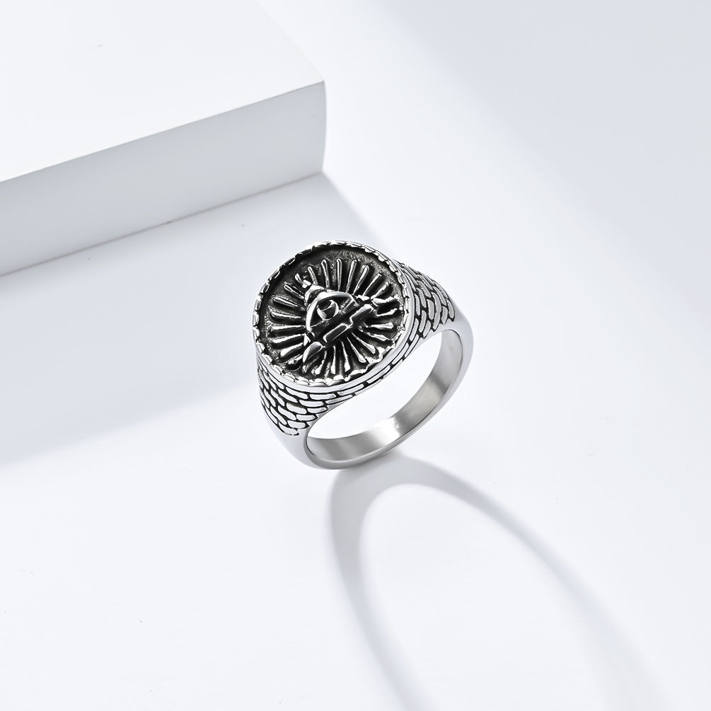 This Cross-border e-commerce retro Egyptian triangle pyramid titanium steel ring men's eye of God stainless steel hand jewelry for men not only makes a bold fashion statement but also serves as a meaningful symbol of protection and strength. Whether for casual outings or special occasions, it's the ideal accessory to elevate your ensemble. Pair it with other accessories or wear it solo for a minimalist look. Make this ring a part of your collection today and express your unique style.