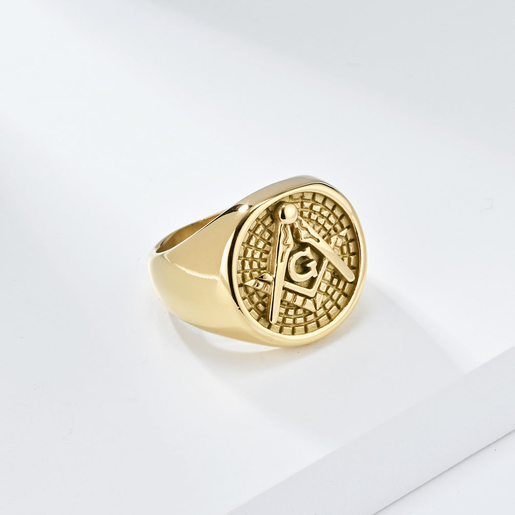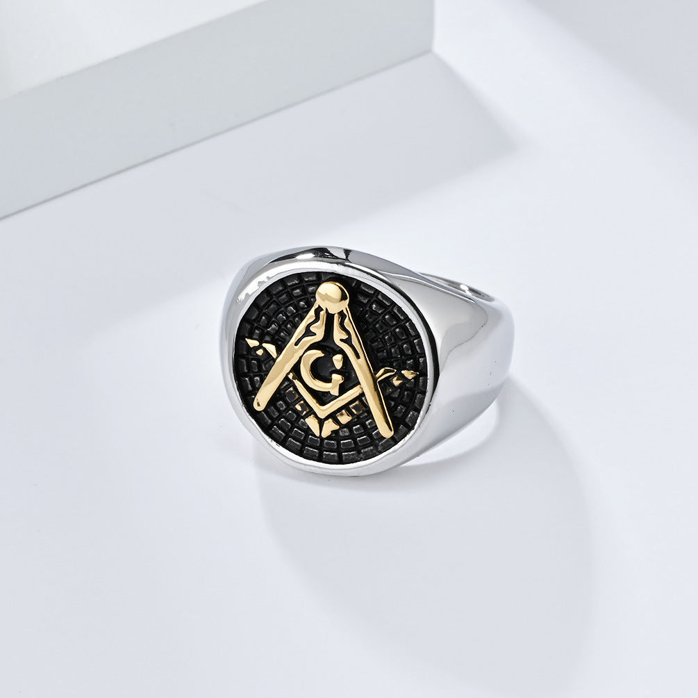 Cross-Border European American Retro Freemasonry Ring for Men