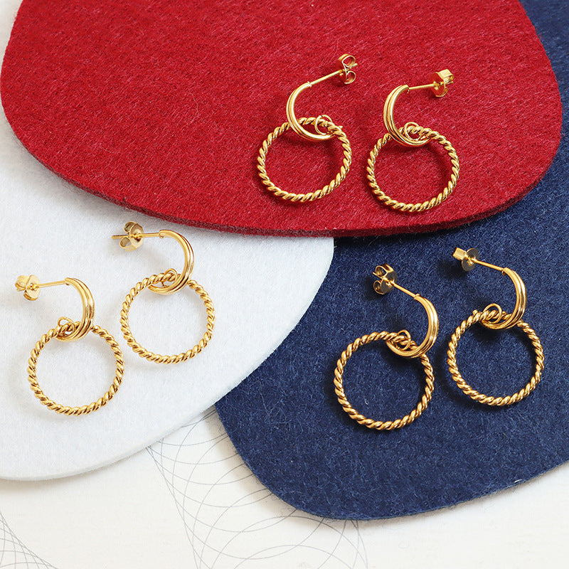 Golden Twist Titanium Plated C-Ring Earrings - Korean Jewelry from Planderful
