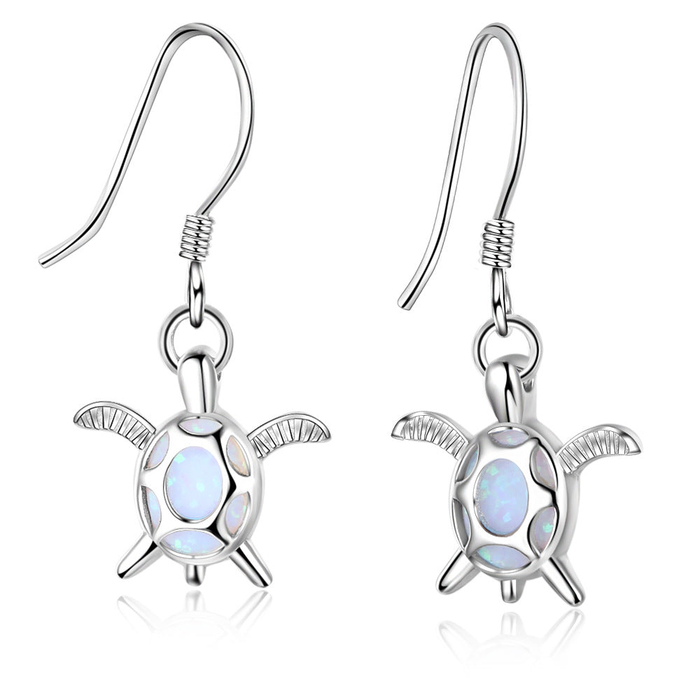 Little Turtle Pendant Blue Opal Sterling Silver Hook Earrings