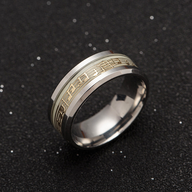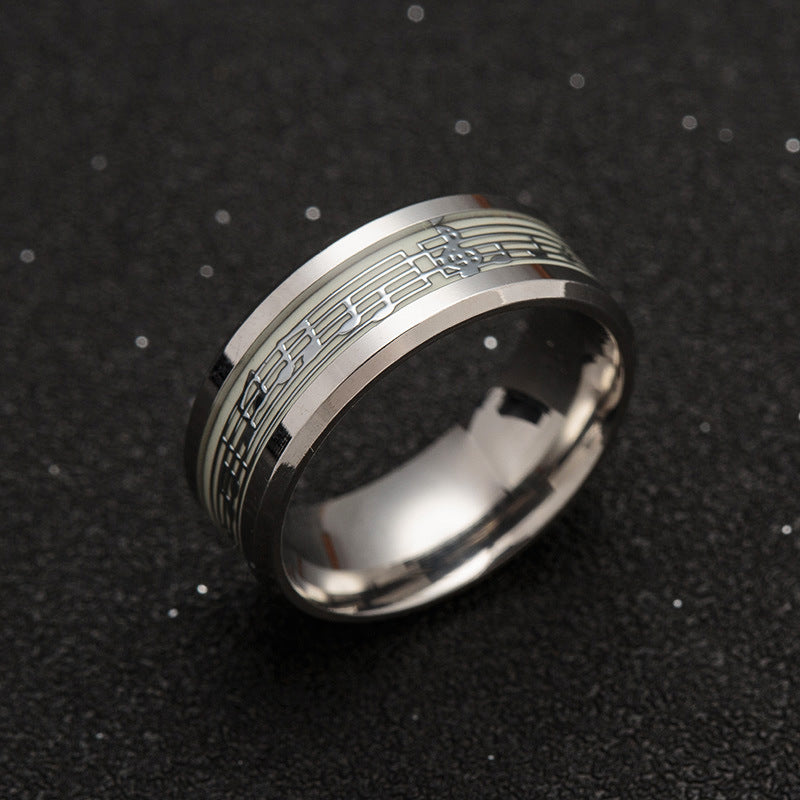 Luminous Piano Stave Ring with European and American Note Design - Men's Jewelry