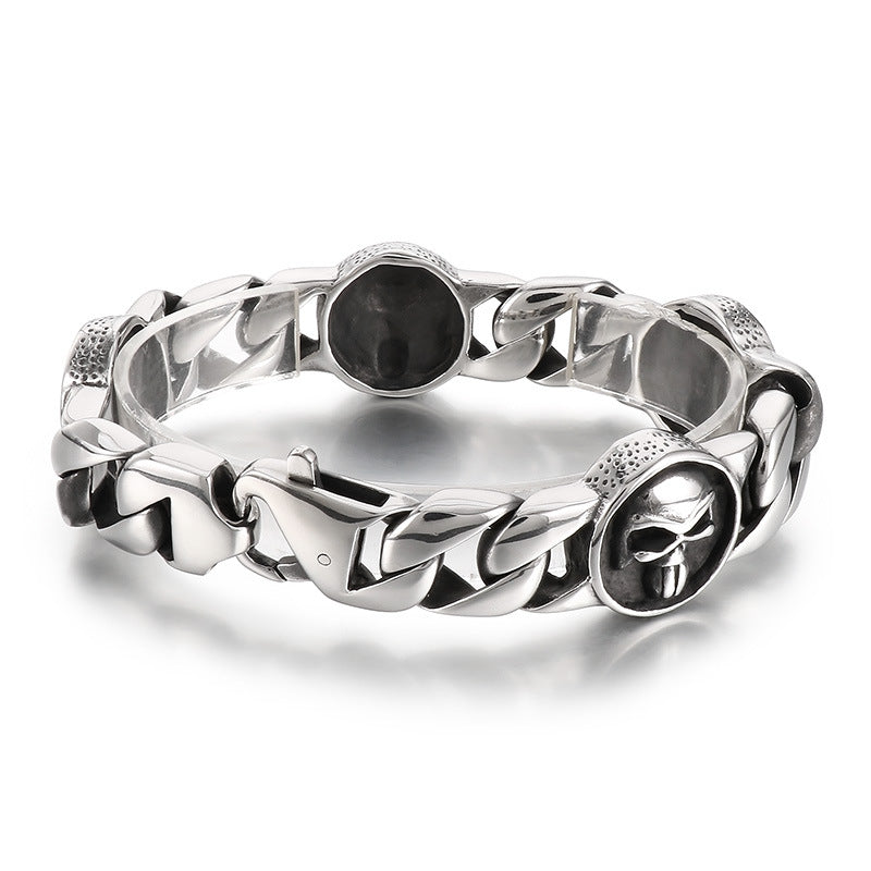 Bold Skull Cuban Chain Bracelet for Men - Halloween Vintage Titanium Steel Jewelry