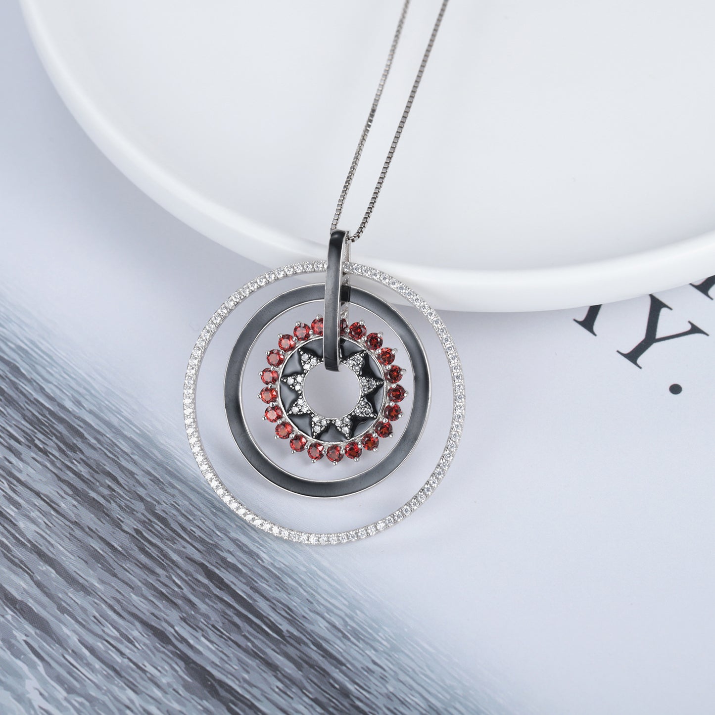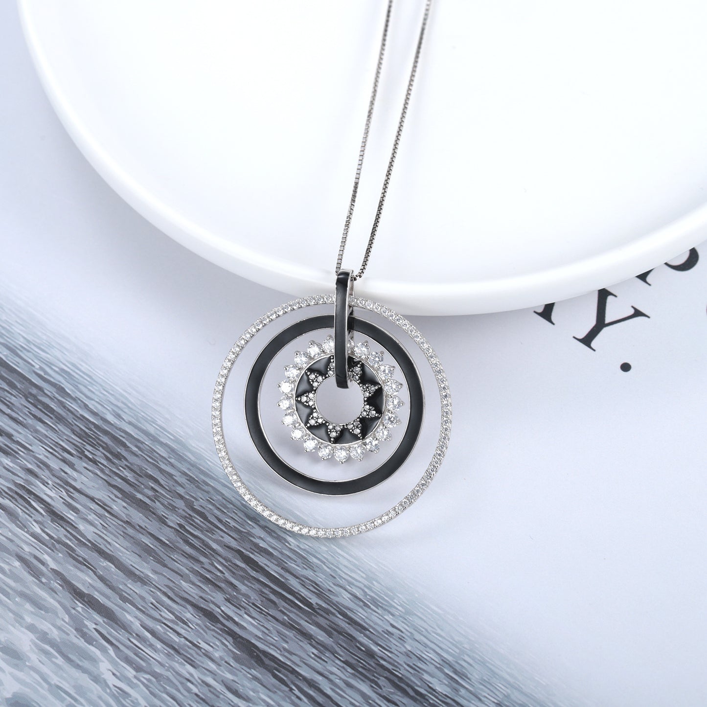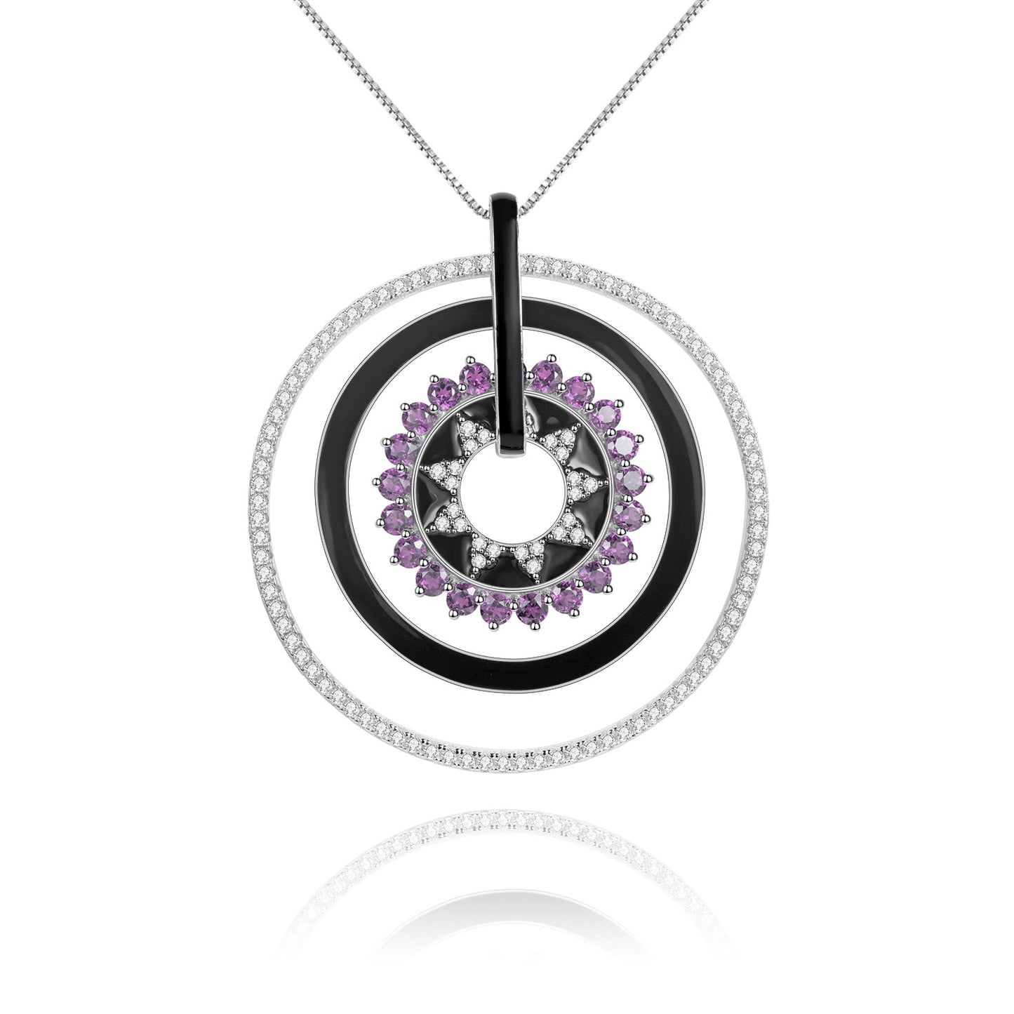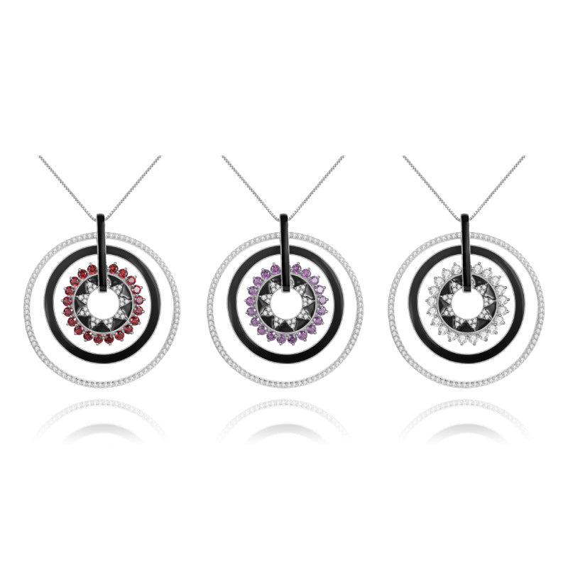 Natural Colourful Gemstones Enamel Circle Pendant Silver Necklace for Women