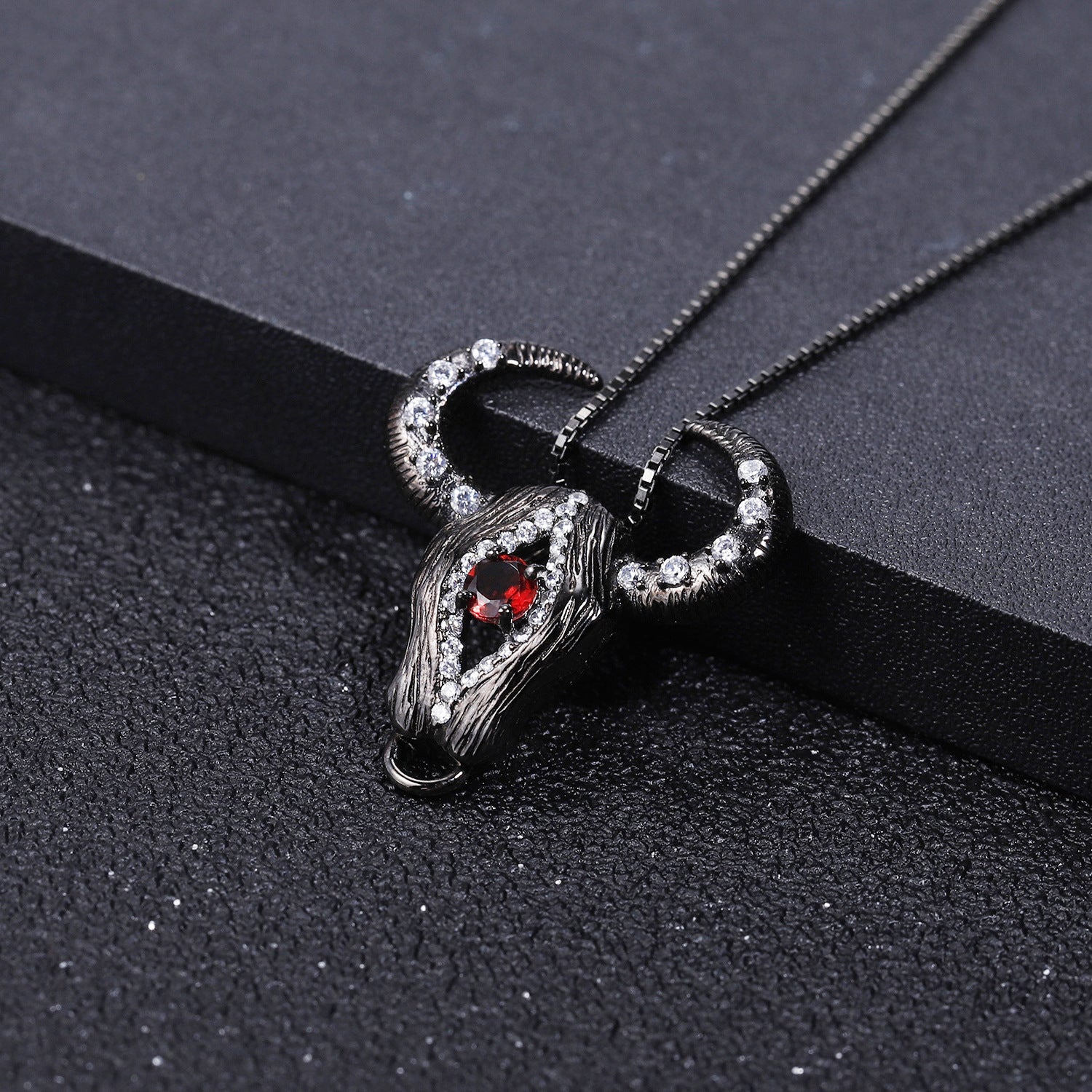This exquisite Dark Retro Design Oxhead Pendant Silver Necklace for Women is inlaid with natural gemstone for a unique look. It's the perfect piece to add extra charm and sophistication to any outfit.