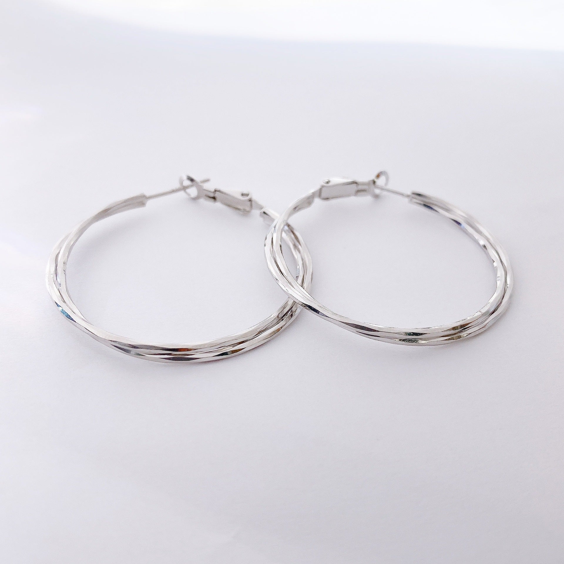 Interweave Circle Big Silver Hoop Earrings for Women