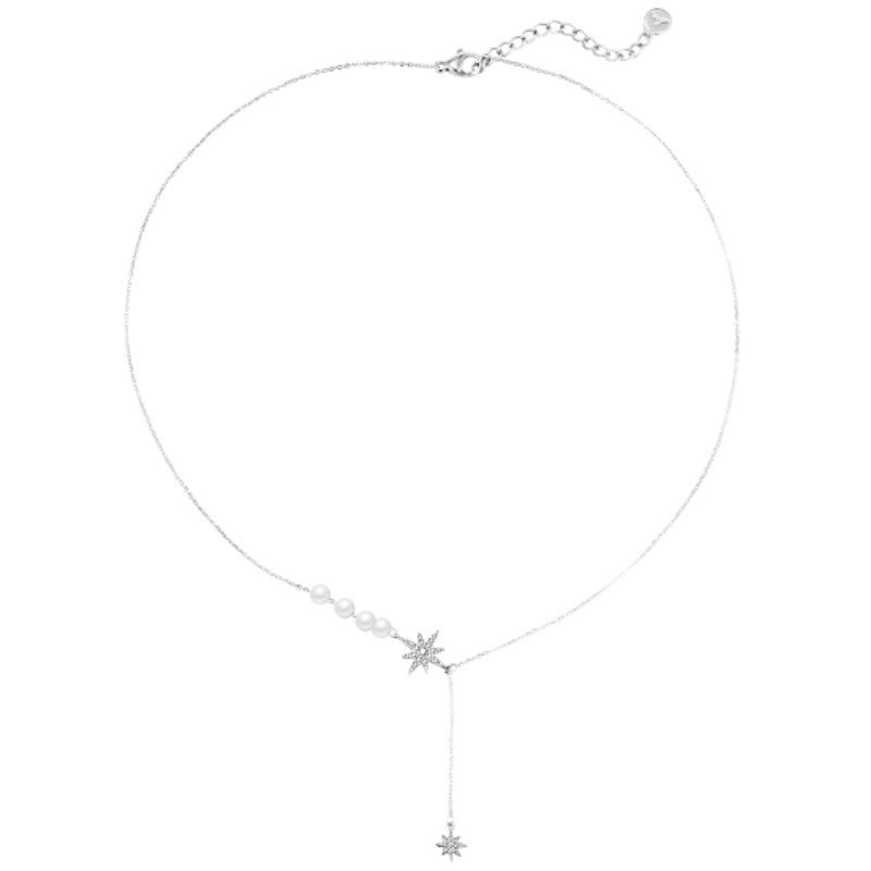 Zircon Eight-star with Pearl Tassle Silver Necklace for Women