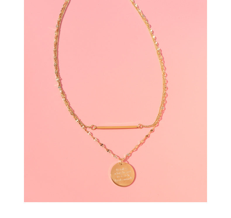 English Geometric Double Layered Necklace with Titanium Clavicle Chain