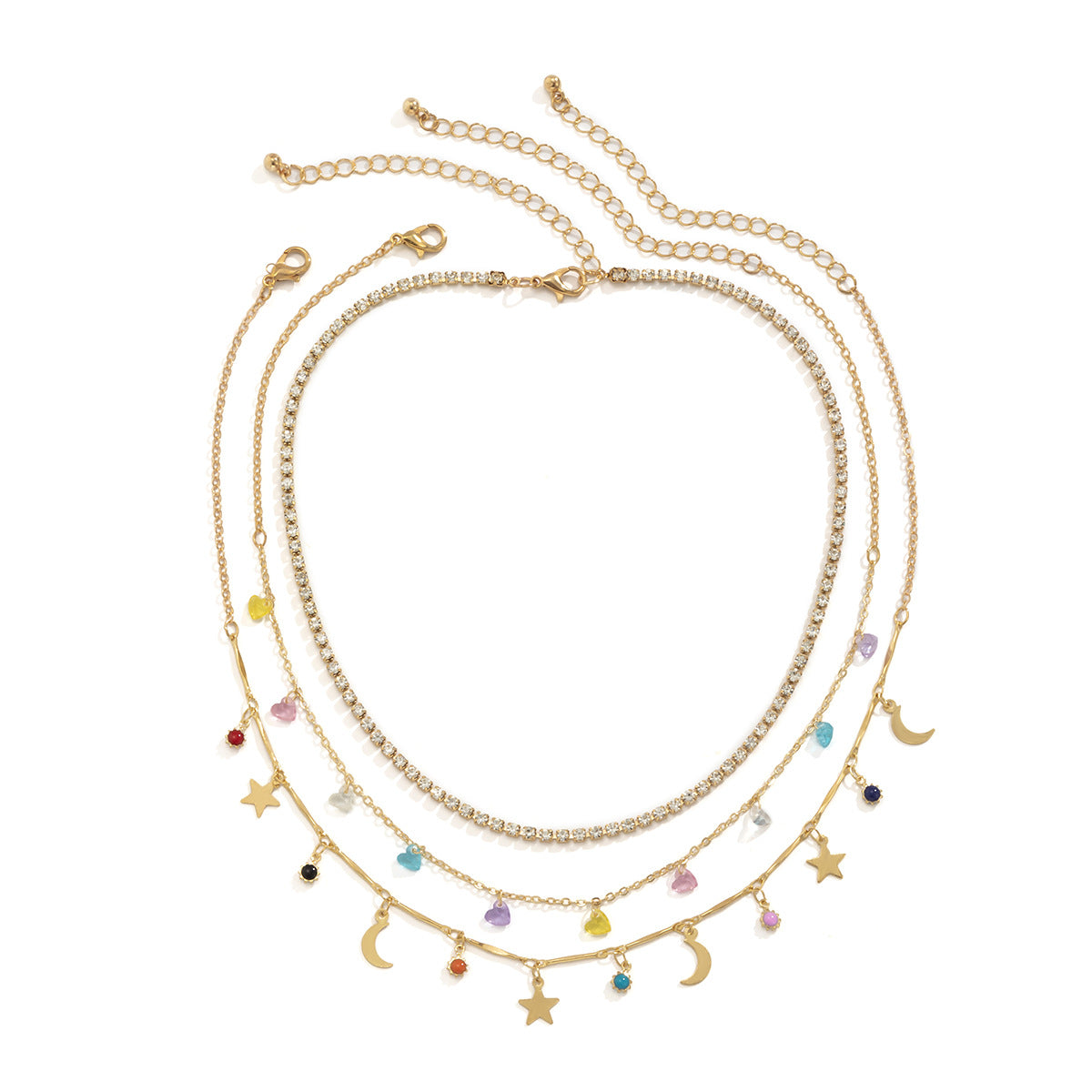 Colorful Tassel Necklace with Star and Moon Ornaments
