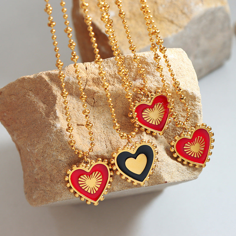 Luxurious Double-Sided Red Spade Heart Necklace with Cross-Border Charm