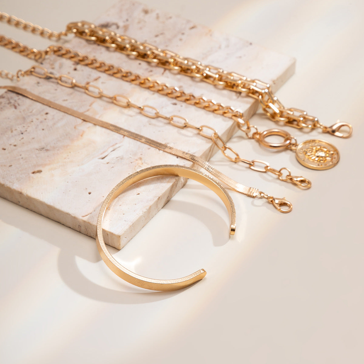 • Crafted from smooth alloy, this bracelet exudes a retro charm