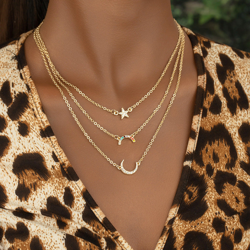 Elevate your style with our Europe and the United States popular new jewelry wholesale 1 three-layer star moon necklace. Crafted by Planderful, this necklace exudes elegance and sophistication with its unique design featuring stars and moons. Whether you want to make a bold fashion statement or add a touch of glamour to your ensemble, this necklace is the perfect choice. Embrace the cross-border trade fashion trend and stand out from the crowd with this exquisite piece from the Vienna Verve collection.