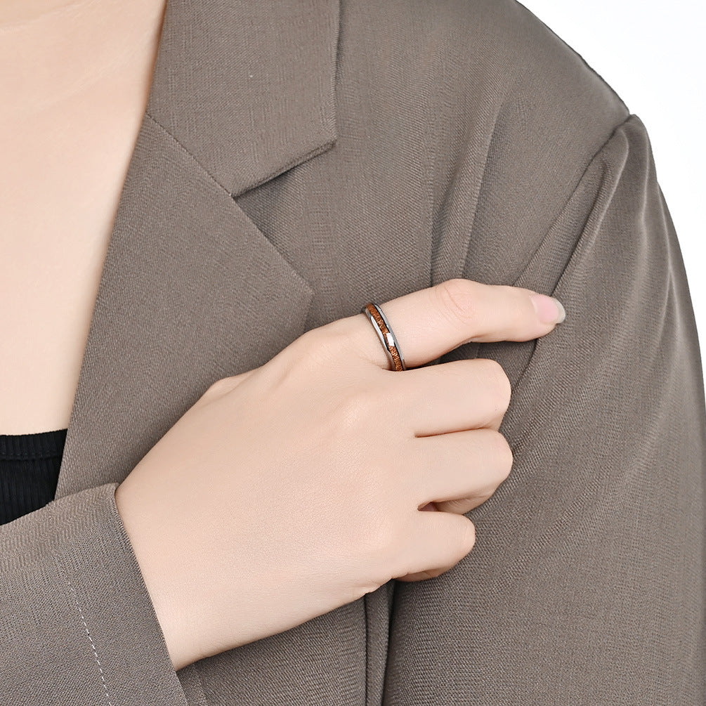 Introduction: A unisex tungsten steel ring featuring inlaid wood and leather accents, designed for men and women who value modern style and lasting quality. Part of the Planderful Everyday Genie collection, it’s available in 4 mm, 6 mm, and 8 mm widths with a tungsten gold finish for a contemporary, high-sense look.