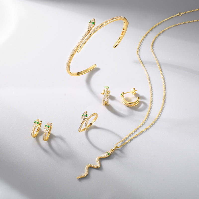 Add a touch of mystique to your ensemble with these mesmerizing C shape stud earrings featuring striking green eye snake zircon. The sterling silver construction ensures durability and timeless elegance, making these earrings a versatile addition to your jewelry collection.