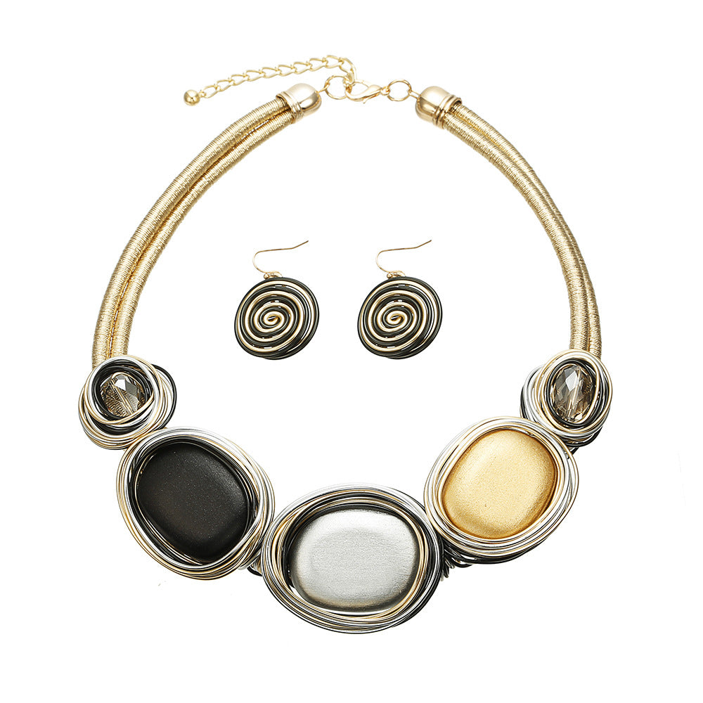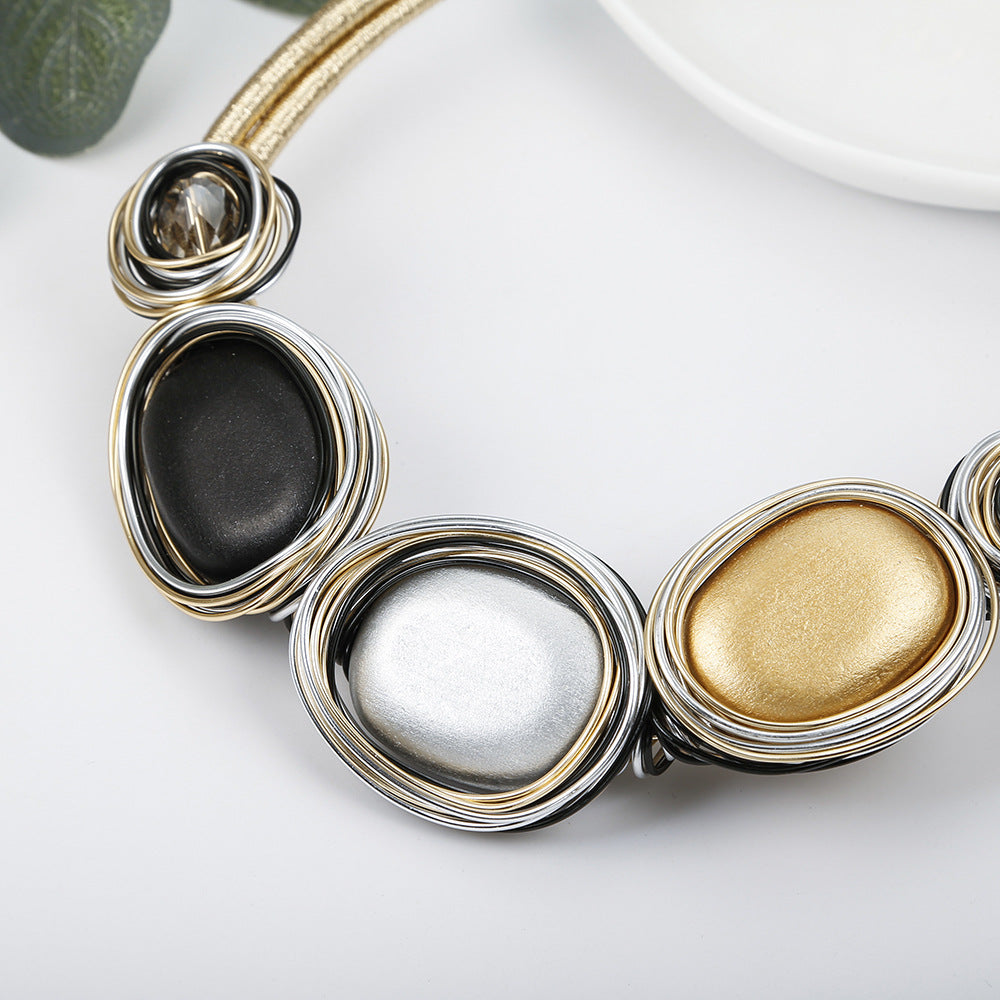 European and American Necklace Set, Aluminum and Wood Geometric Block Necklace, Handmade Amazon Jewelry Necklaces