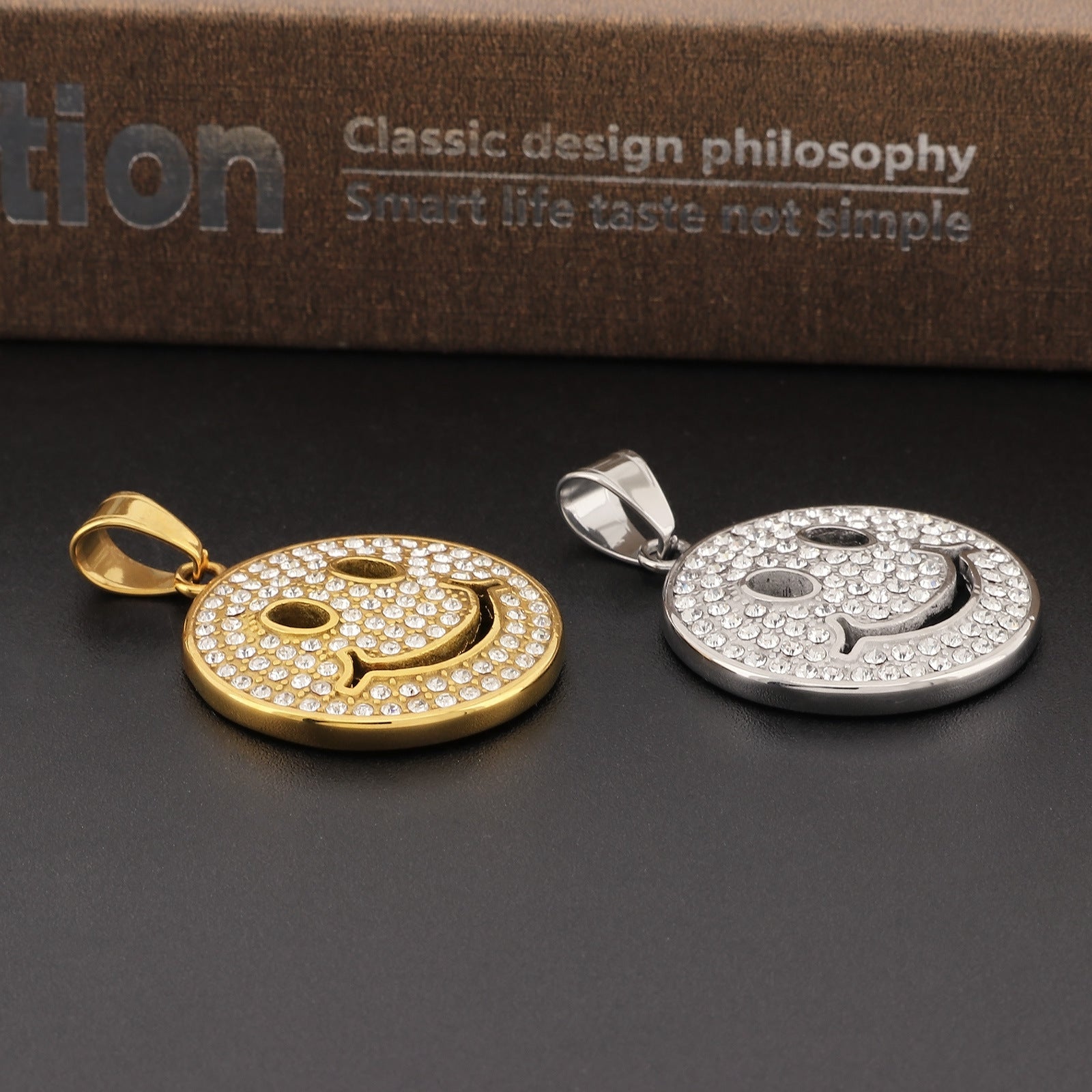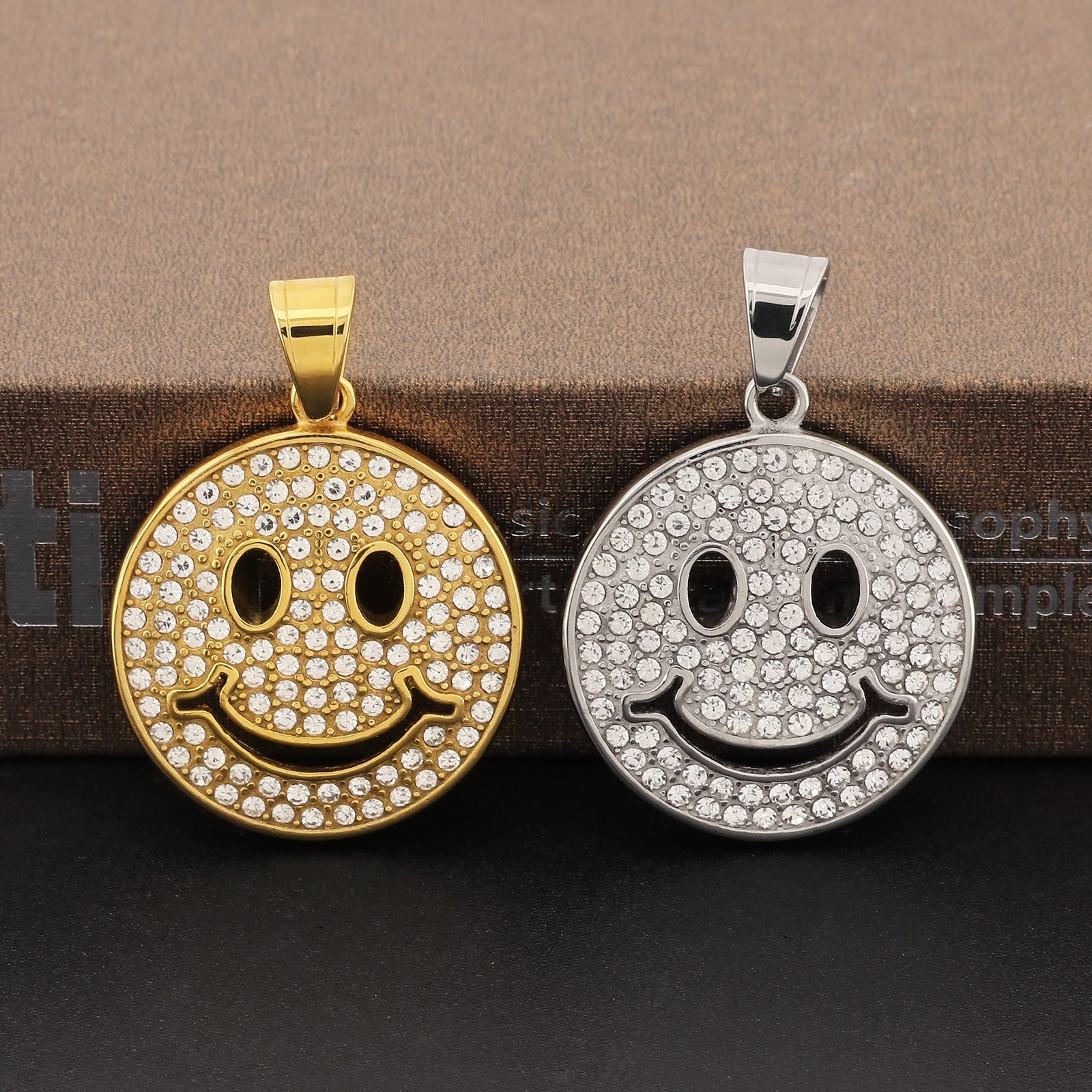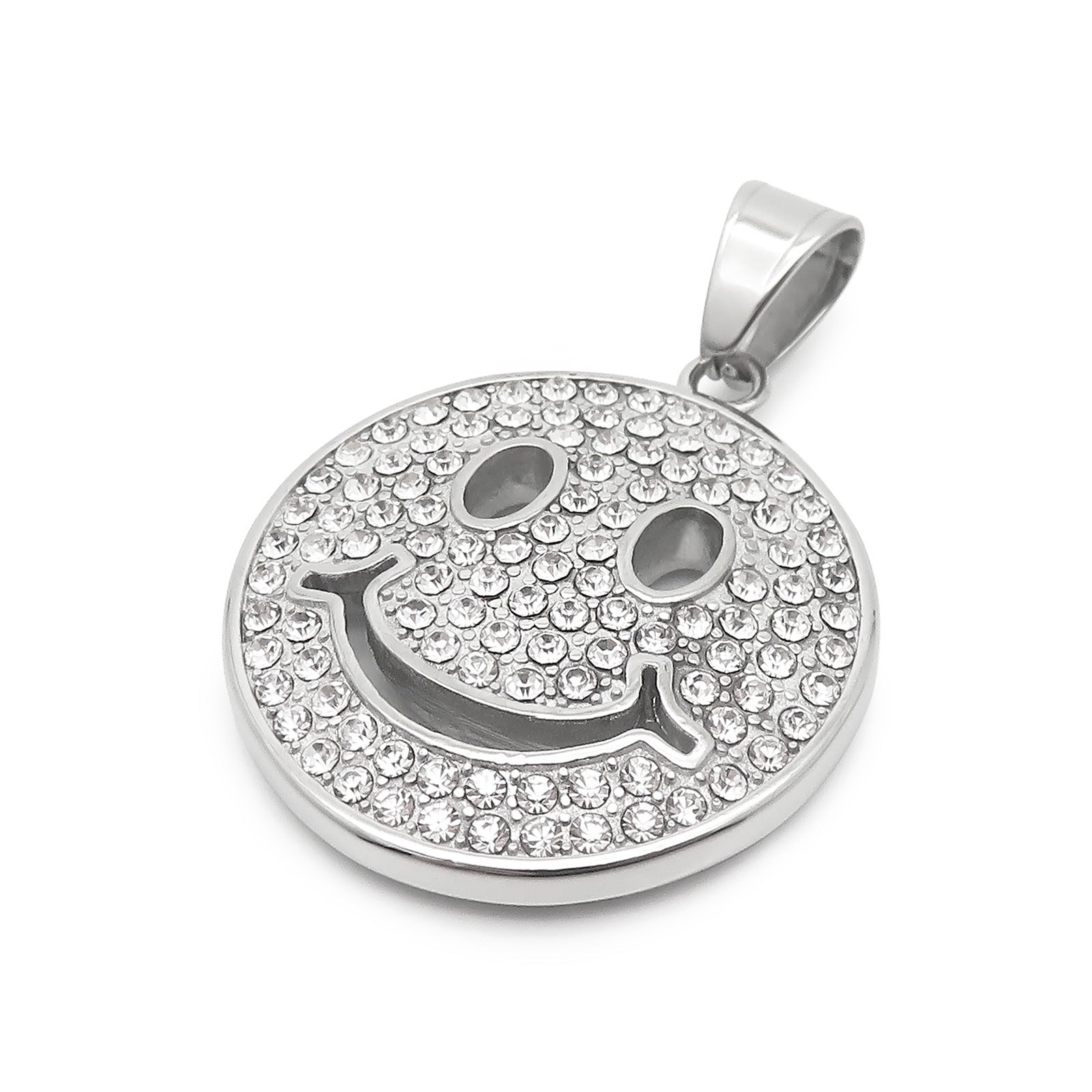 Cross-Border Hiphop Zircon Smiley Face Pendant for Men and Women in Stainless Steel