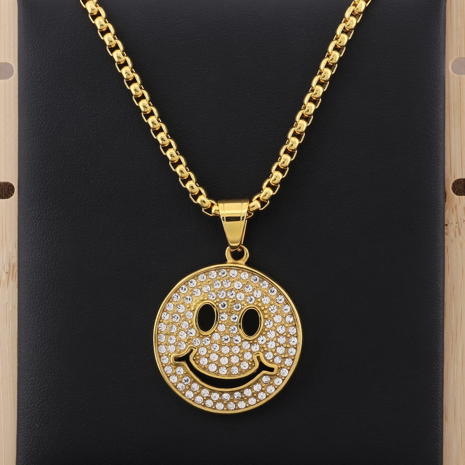 Elevate your accessory game with our European and American cross-border emoji pendant, featuring a stunning zircon smiley face symbol. Crafted for both men and women, this pendant blends style and personality effortlessly.