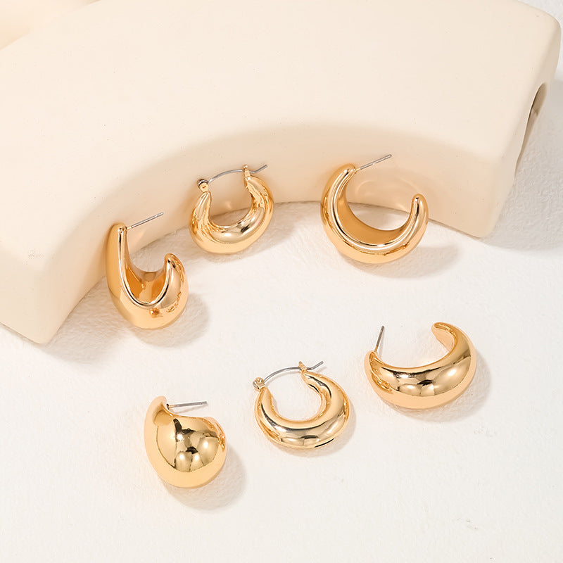 Discover the epitome of cross-border fashion with our high-end hoop earrings set, designed for the modern woman who appreciates simplicity and sophistication.