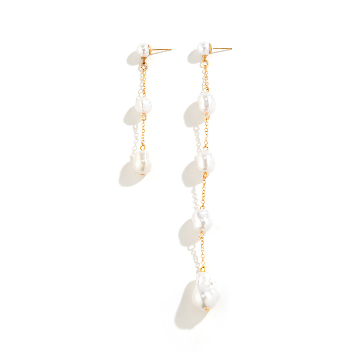 Cold Wind Tassel Earrings with Imitation Pearl Studs