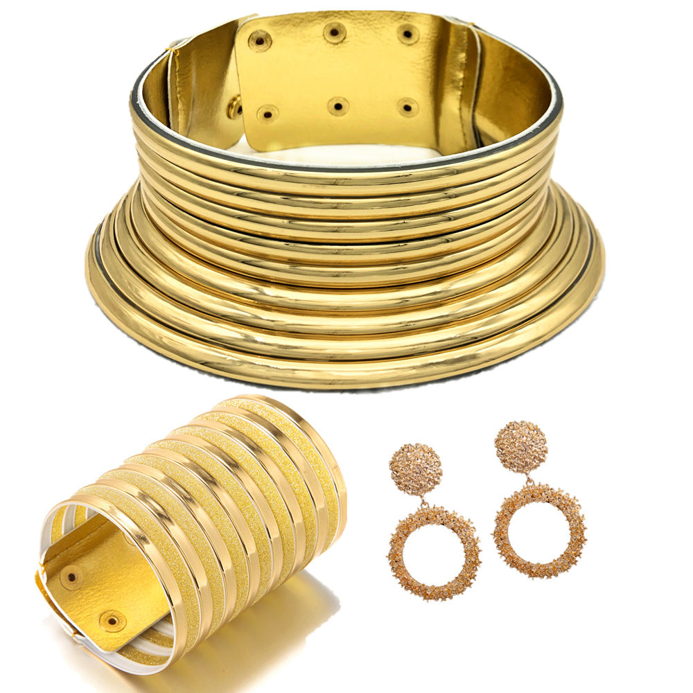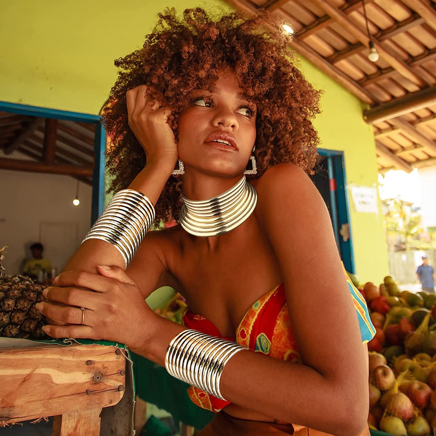Amazon's Best-selling Three-Piece Exaggerated Choker Necklace Set with African Tribal Inspiration