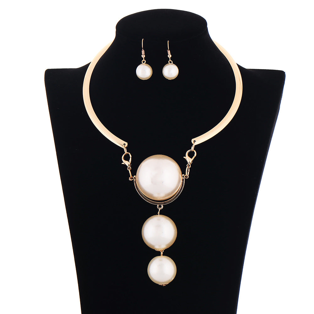 Pearl Embellished Foreign Trade Necklace Set with Cross-border Style