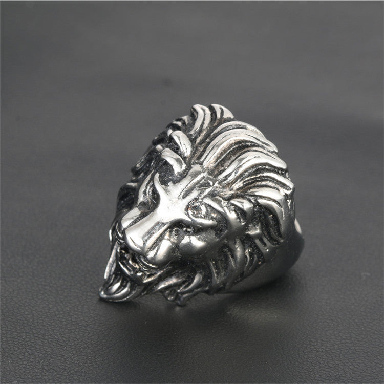 Titanium Steel Lion Head Ring for Men - Bold Punk Fashion Accessory
