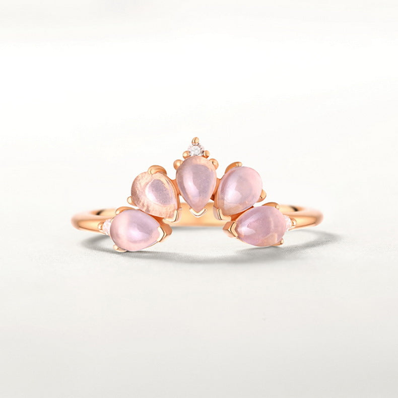 Pear Shape Pink Crystal Petals Design Opening Silver Ring