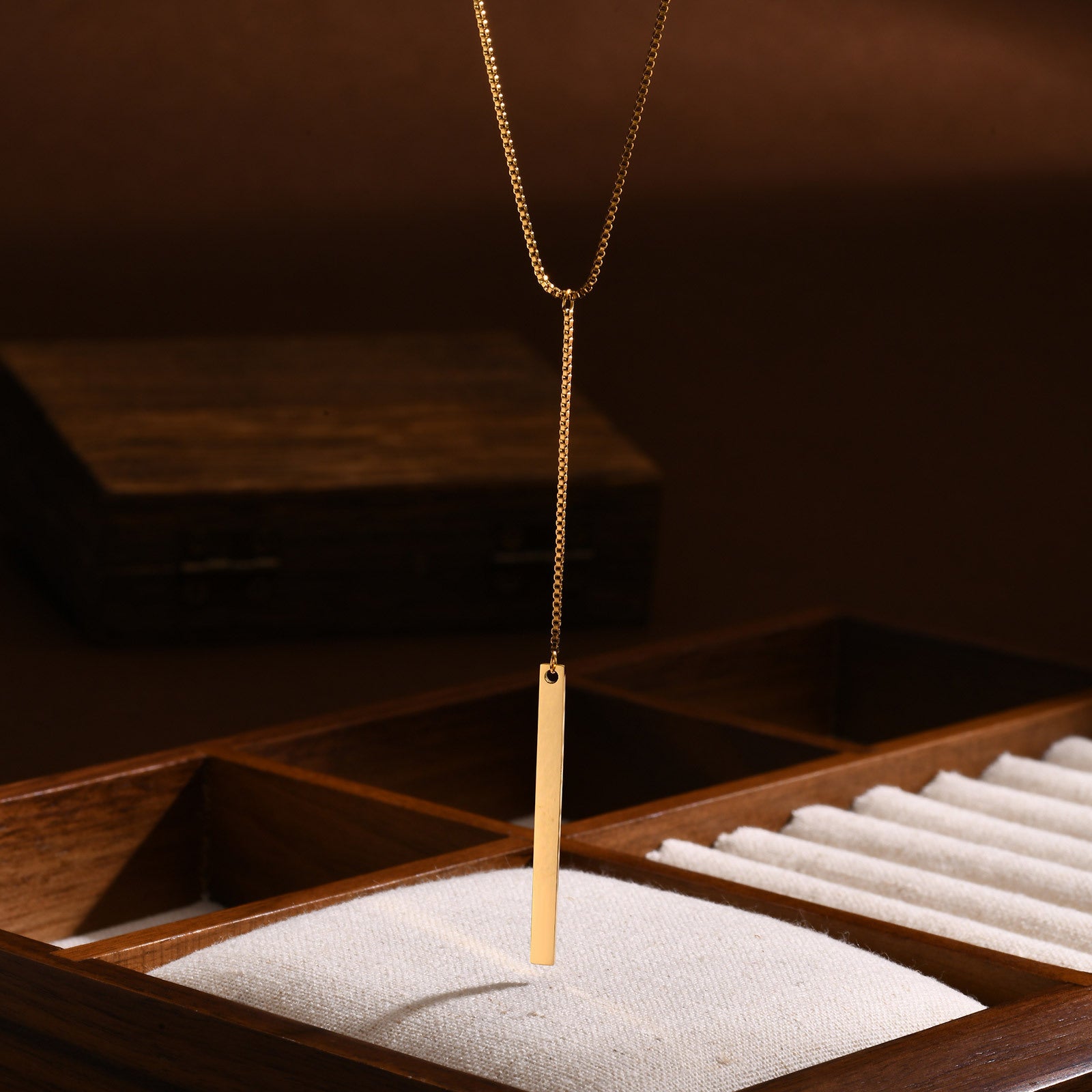 Introducing our stunning European and American jewelry, a beautifully crafted stainless steel box chain necklace that is sure to elevate your style. This exquisite rectangular strip design features a unique fringed Y-shaped necklace that adds a touch of sophistication and flair, making it the perfect accessory for women who appreciate fashion and elegance.