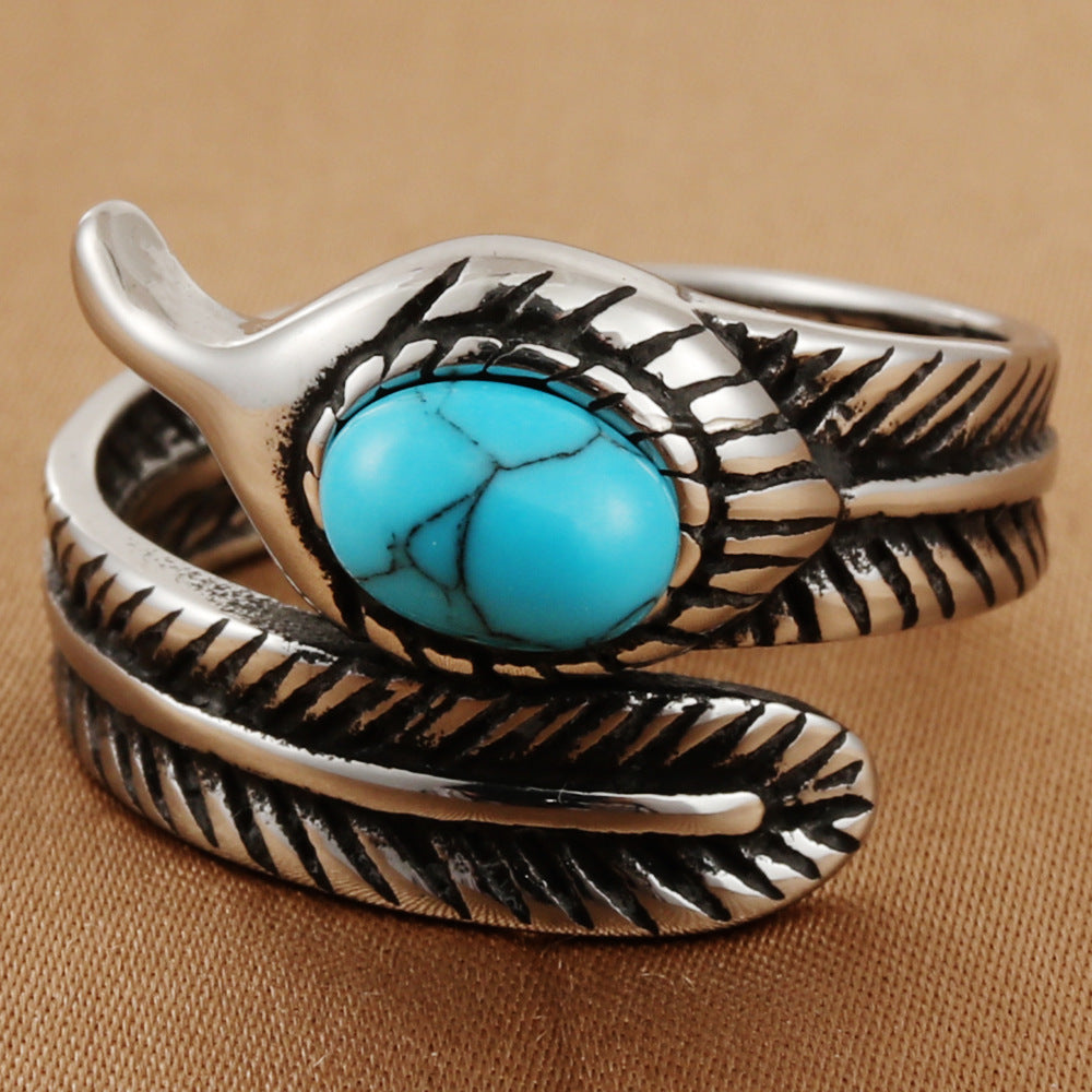Titanium Steel Feather Ring for Men - Retro Trendy Animal Jewelry Accessories