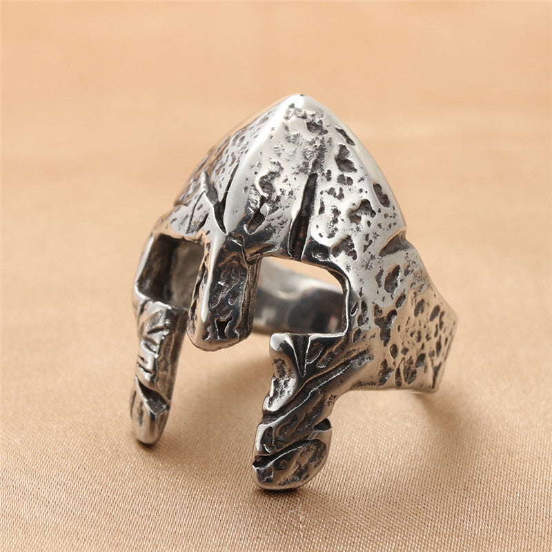 Titanium Steel Spartan Helmet Ring for Men - Retro Trendy European and American Jewelry Accessory