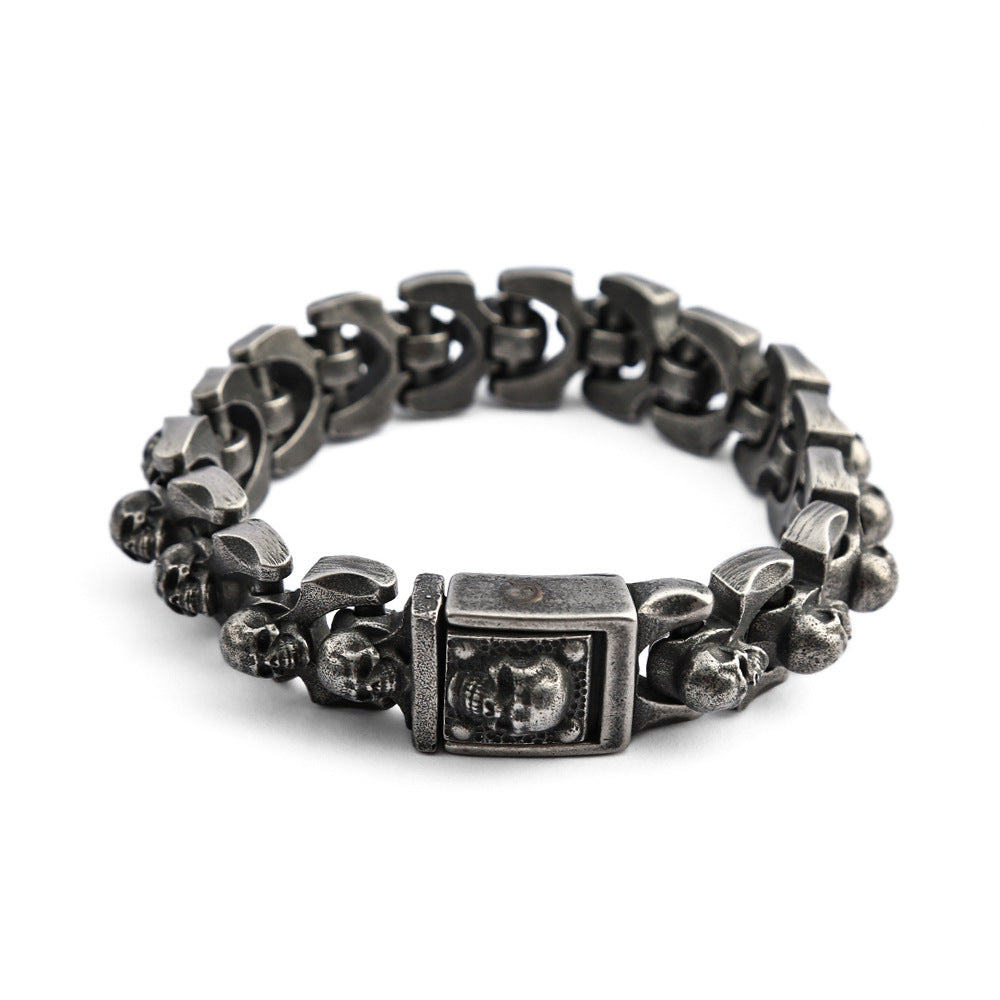 This foreign trade piece is not just a fashion accessory; it's a representation of your unique personality and style. Whether you're dressing up for a night out or looking to elevate your everyday look, the European and American jewelry wholesale stainless steel domineering skull bracelet is the perfect choice.