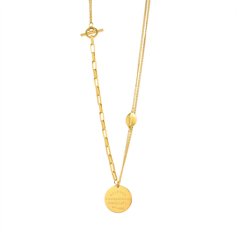 Golden Round Pendant Necklace with OT Buckle Design - European Style