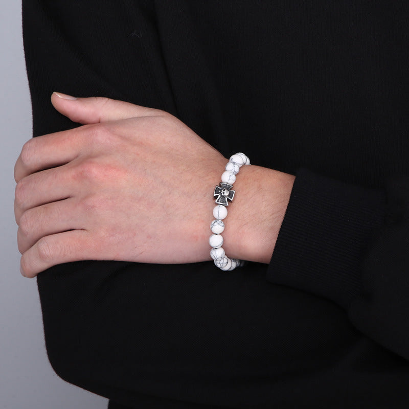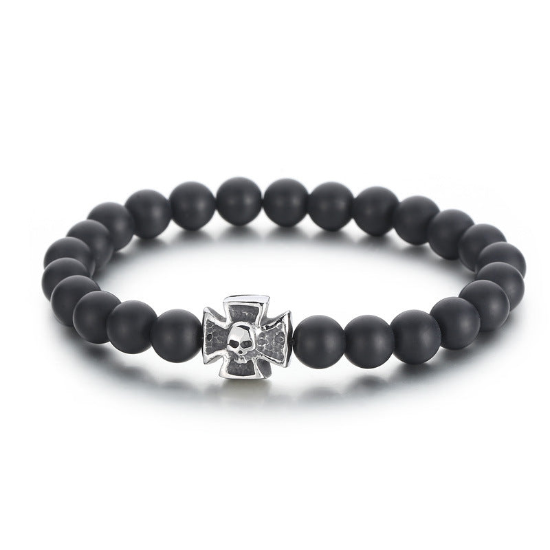 Unleash your unique style with our stunning European and American matte black agate bracelet, expertly crafted for the modern man. This eye-catching accessory combines bold elements of fashion and spirituality to elevate any outfit.