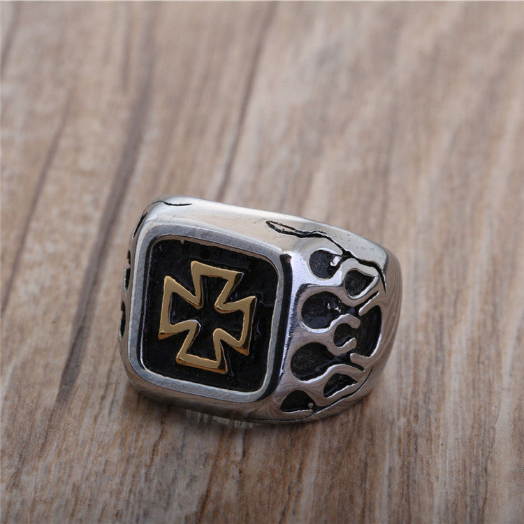 Titanium Steel Punk Cross Ring for Men - Retro Hipster Style