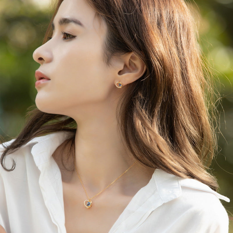 Triangle Blue Crystal Geometric Heart Shape Sterling Silver Stud Earrings