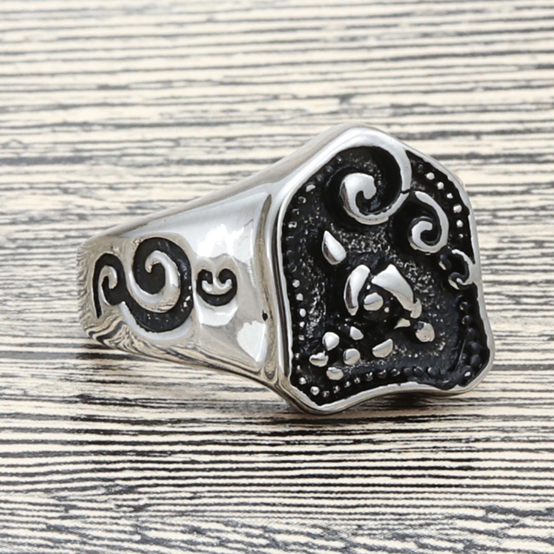 Titanium Steel Floral Totem Ring for Men - Retro Punk Style Stainless Steel Jewelry