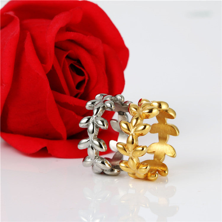 Trendy Titanium Steel Leaf Wreath Ring for Men and Women - A Stylish Gift Idea
