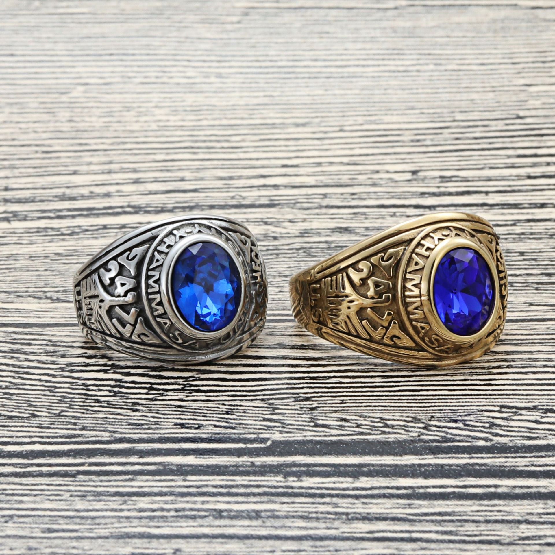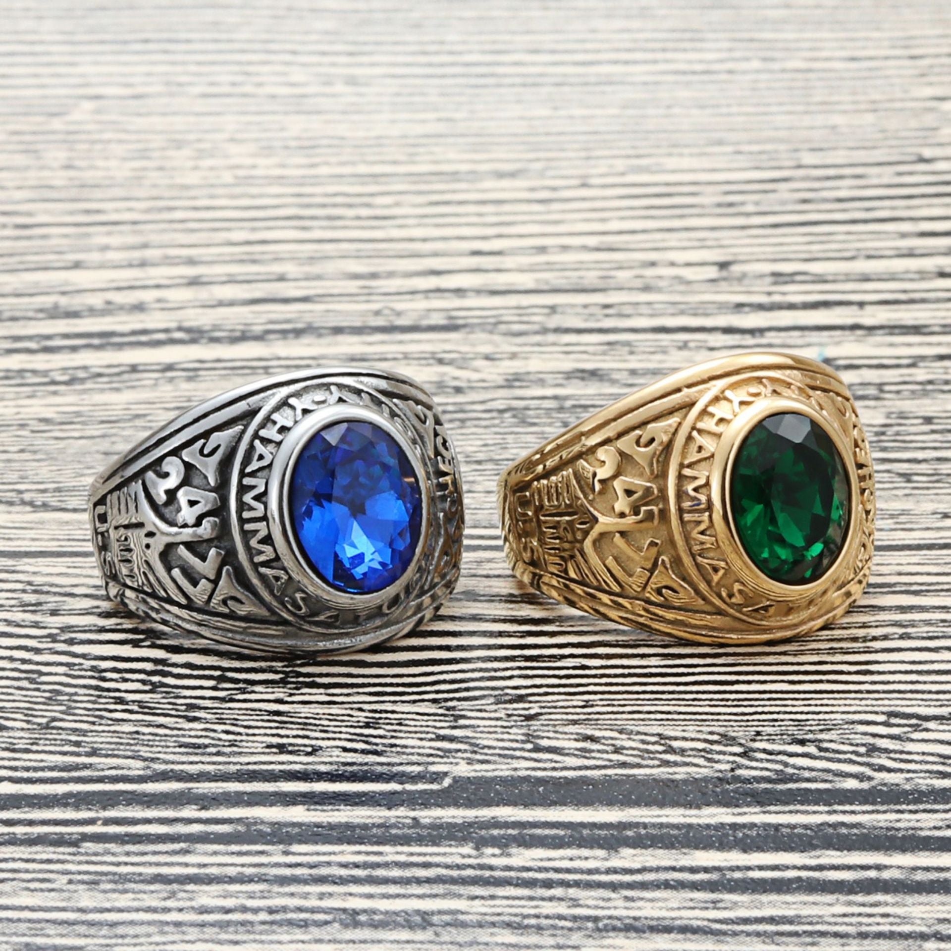 Titanium Steel Multi-Color Gemstone Ring for Men - Retro Punk Style with Letter Design