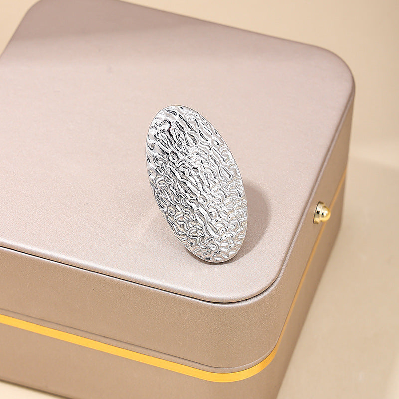 Indulge in the allure of niche fashion with our stunning retro jewelry piece, the Cross-Border Metal Texture Oval Ladies Ring. Elevate your style effortlessly with this wholesale jewelry item that is designed to make a statement.