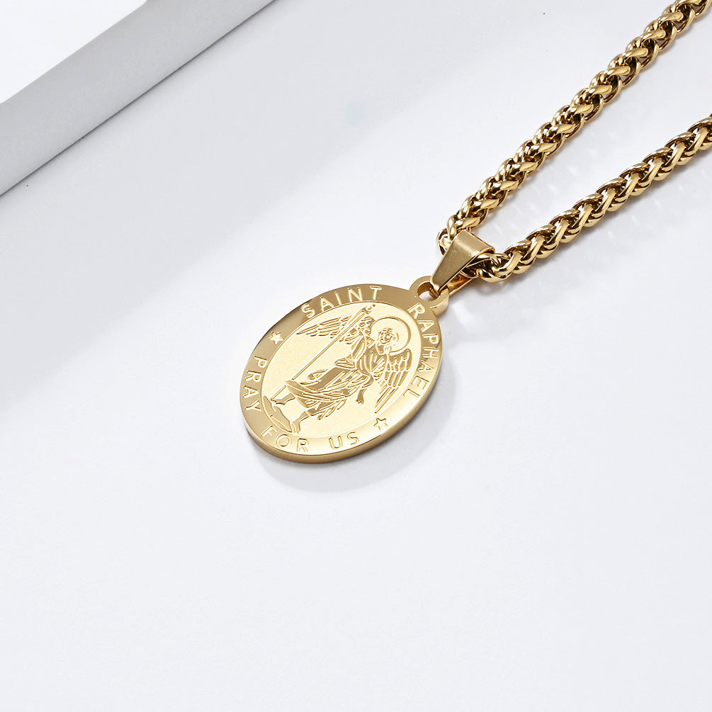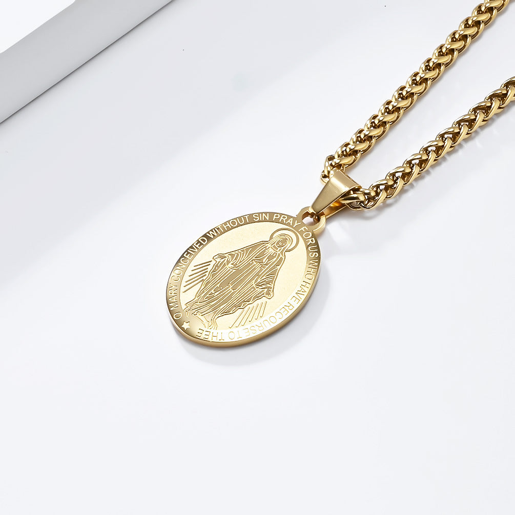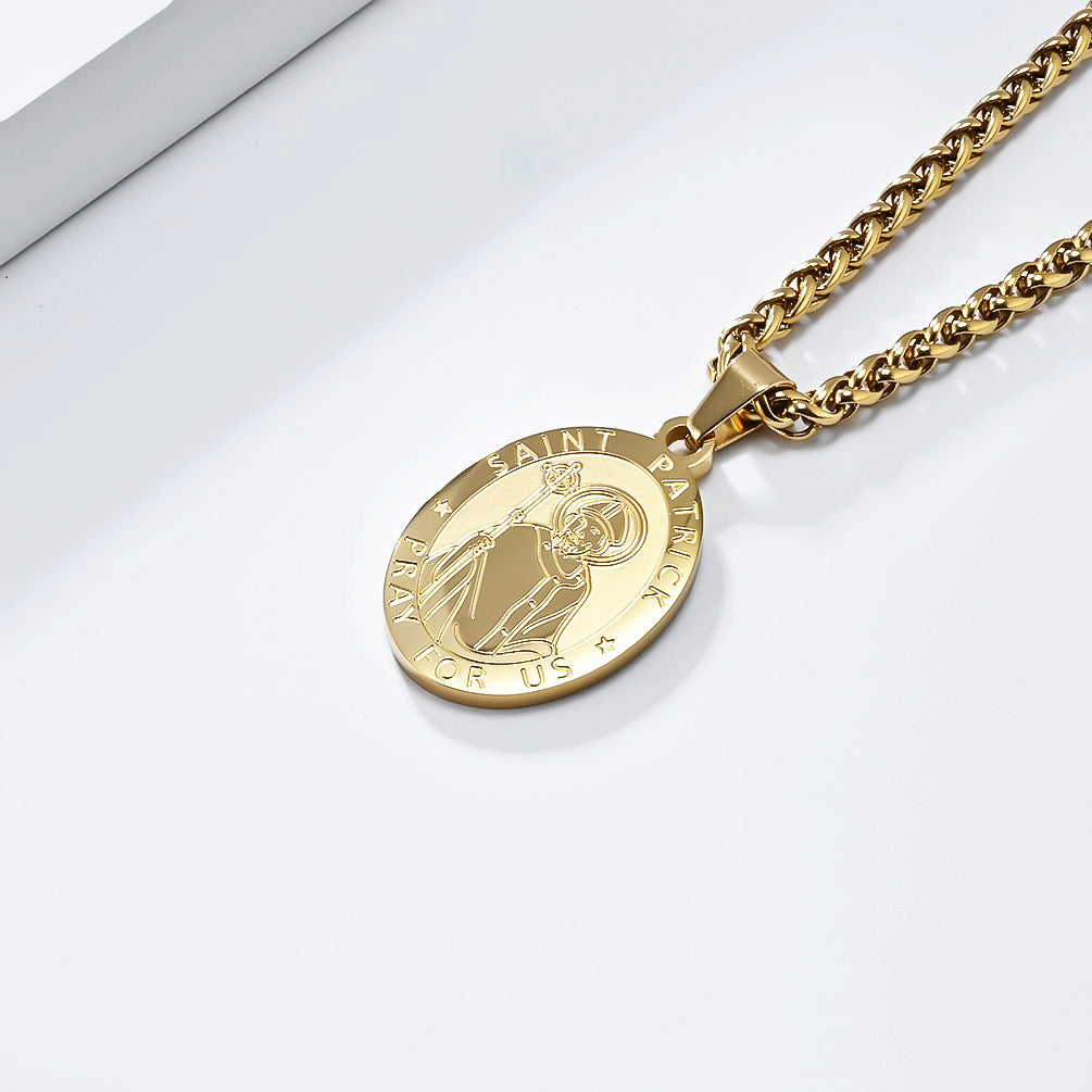 Discover the elegance and spirituality of our European and American patron saint of God oval medal titanium steel pendant. This unisex jewelry piece is not just an accessory; it's a symbol of faith and style that makes a perfect gift for men.
