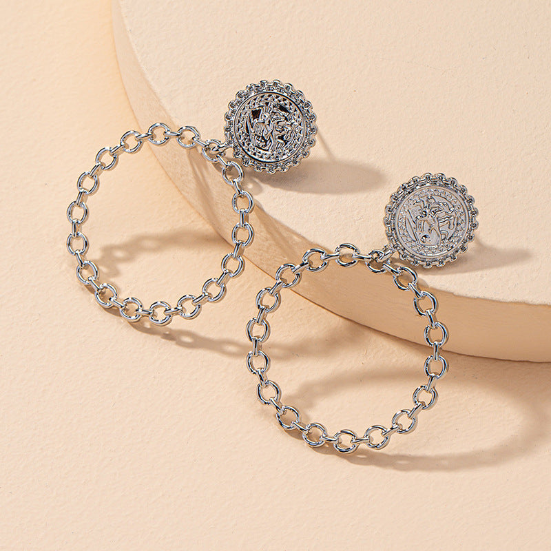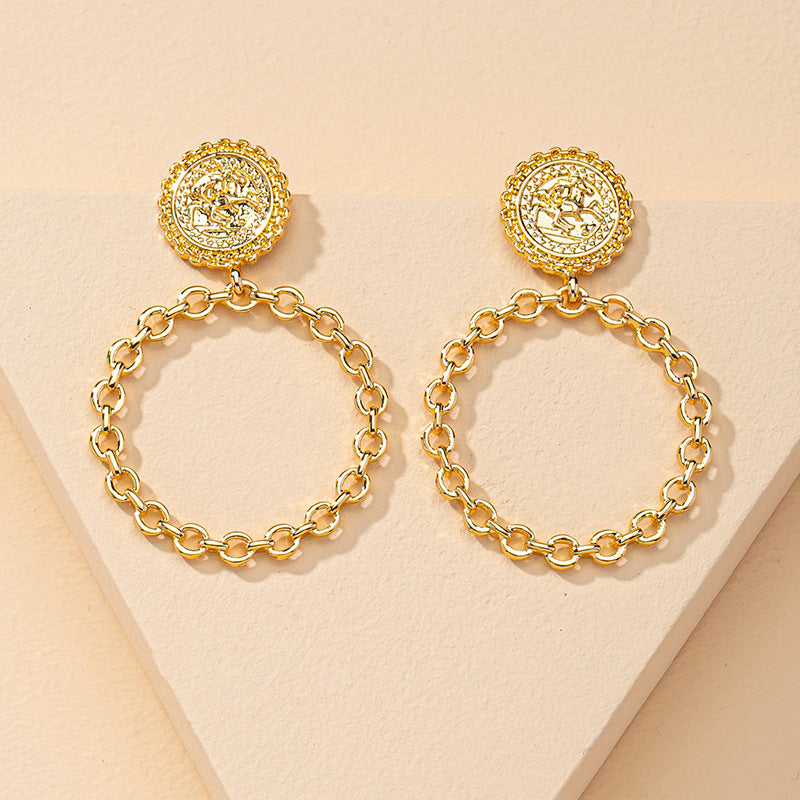 Wholesale Vienna Verve Metal Earrings with Gold Coin Chain Detail
