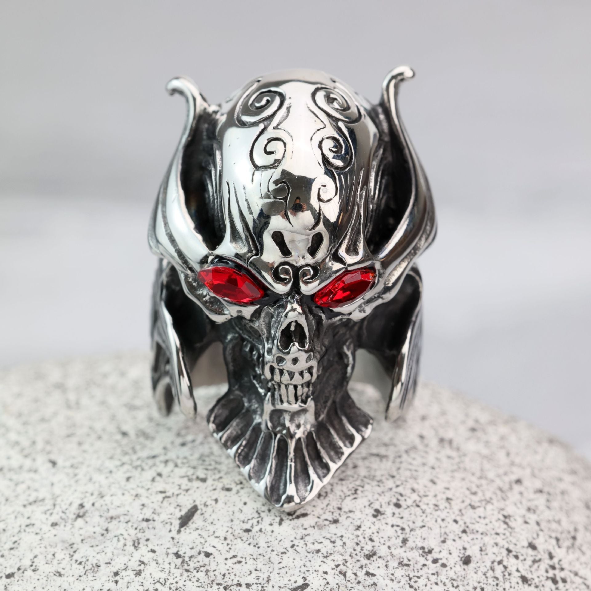 Planderful Mens Skull Ring Stainless Steel Retro Domineering Punk Hollow Skull Design Statement
